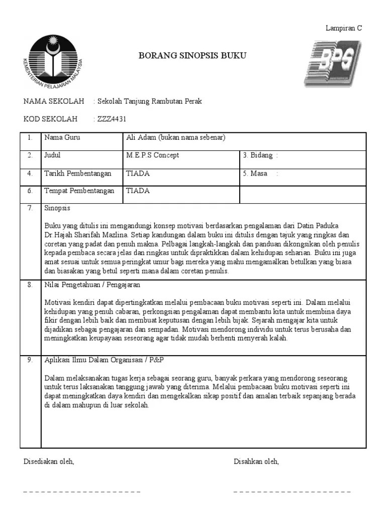 Lampiran c borang sinopsis buku nama sekolah: